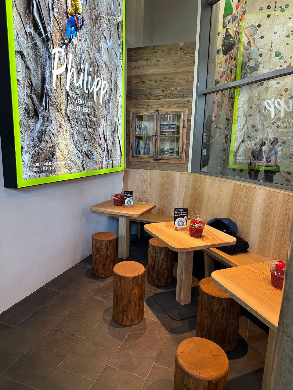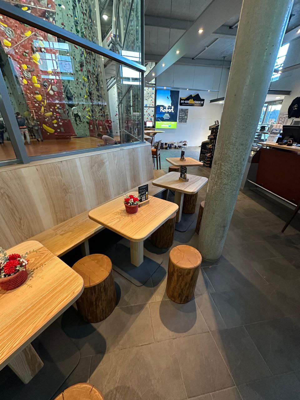 Wie ihr sicher schon gesehen habt, wurde unser Bistrobereich neu und modern gestaltet und lädt jetzt noch mehr zum Verweilen ein. Ob nach der Kletter- und Bouldersession oder als Treffpunkt vor dem Training – die neue Atmosphäre sorgt für ein rundum stimmiges Erlebnis. Ende der Woche ergänzen zehn neue Barhocker den Bereich und schaffen zusätzliche Sitzmöglichkeiten.